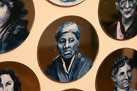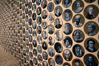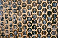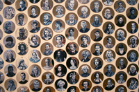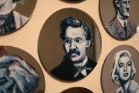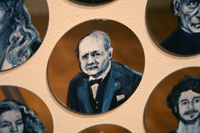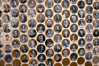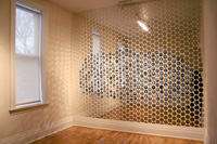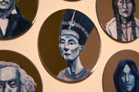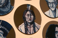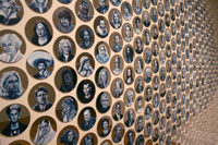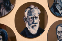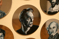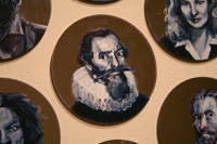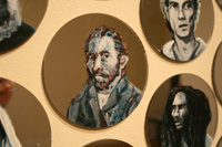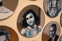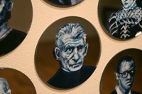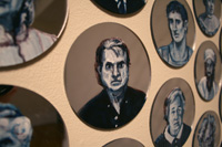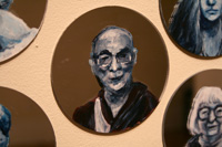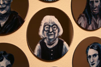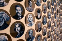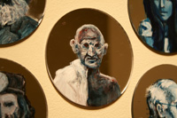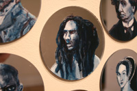 Gareth Bate’s Jewel Net of Indra is an ongoing large-scale installation that will take several years to complete. It is a cosmology representing the interconnectedness of humanity. The starting point is a Mahayana Buddhist metaphor of an infinite net of jewels, each representing an individual. Every jewel contains a reflection of all others. The installation will attempt to represent the totality of lives lived and the historical connections between them. The images below represent the 325 people of Phase 1 which were exhibited at Toronto's Gladstone Hotel. Gareth has now painted over 1900 people. His ultimate goal is 6765. Read Artist Statement and List of Names... |
