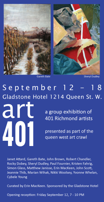 "Art 401: A group exhibition of 401 Richmond Artists" The Gladstone Hotel, Toronto. |