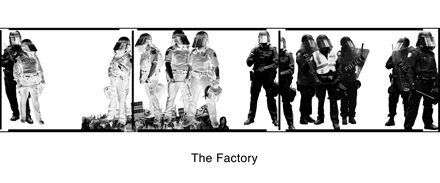 Gallery 1313, "Courvoisier Collective Gallery Award Winners Exhibition": I exhibited a graphic photomontage piece called "The Factory" a commentary about Toronto's G20 police force which was based on the iconic photo by Richard Avedon called "Any Warhol and The Members of the Factory."